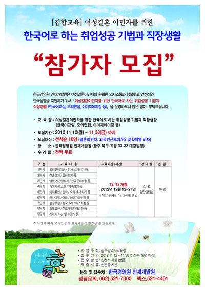 [전액무료]결혼이주민여성을 위한 한국어교실(취업성공기법)