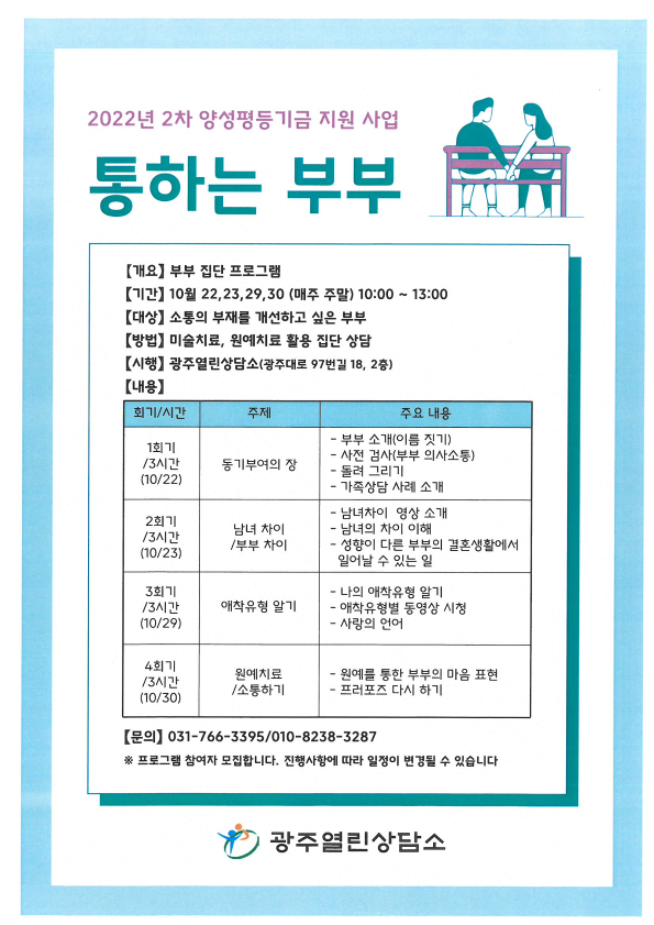 2022년 2차 양성평등기금 지원사업 '통하는부부' 프로그램 안내 및 참여자 모집