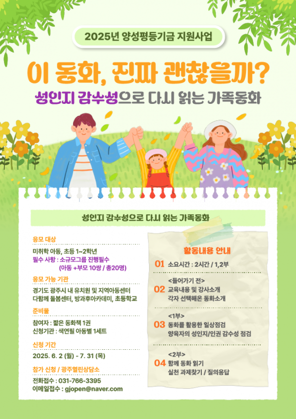 2025년 6월부터 10월까지 '성인지감수성으로 다시 읽는 가족동화' 프로그램을 진행합니다.
